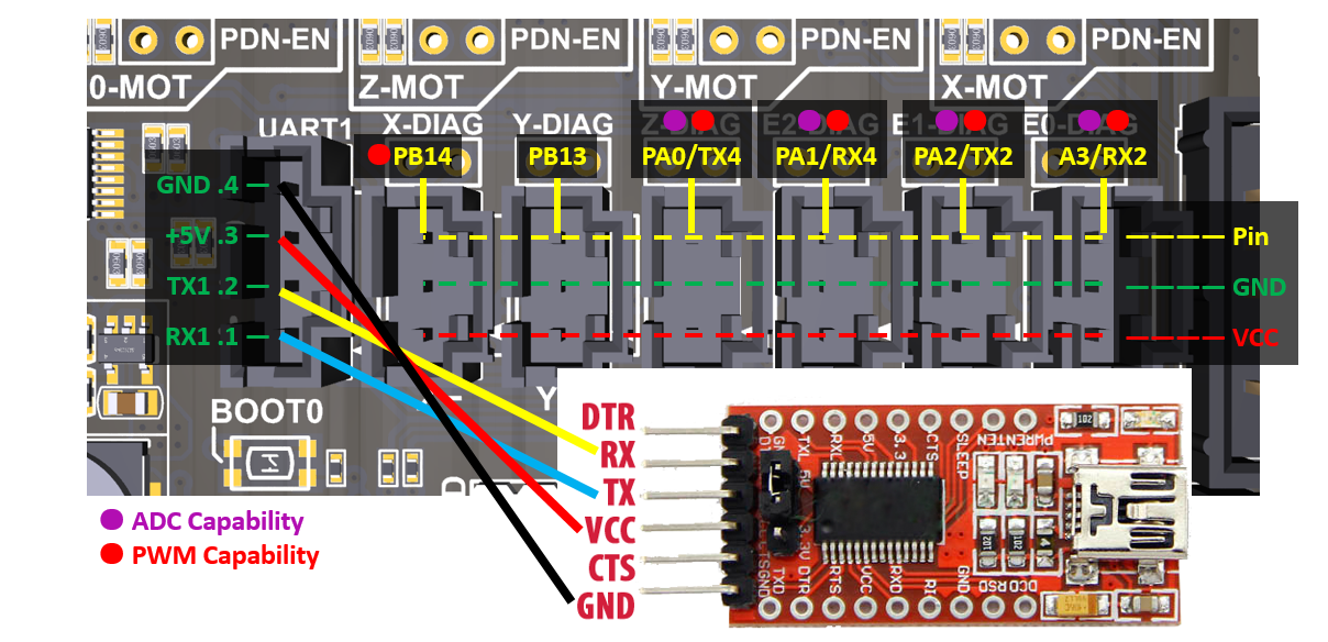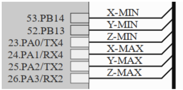 USART4 -RX4 y TX4- (PA1 y PA0 en X-MAX y Z-MIN)