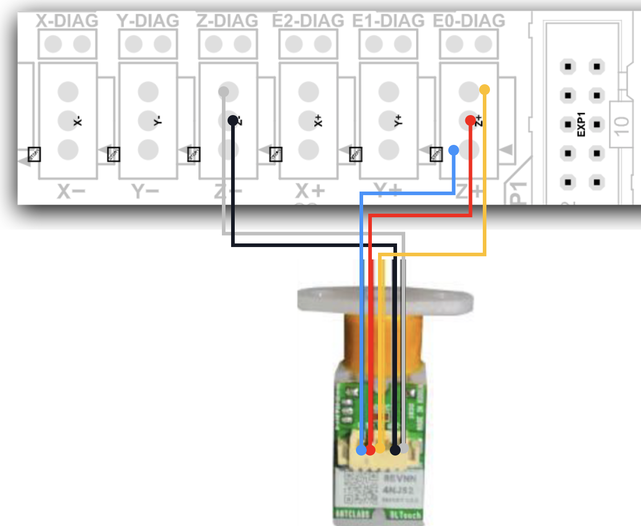 La instalación de un sensor de nivelación del tipo Bltouch es muy sencilla y la podemos realizar usando el siguiente esquema: