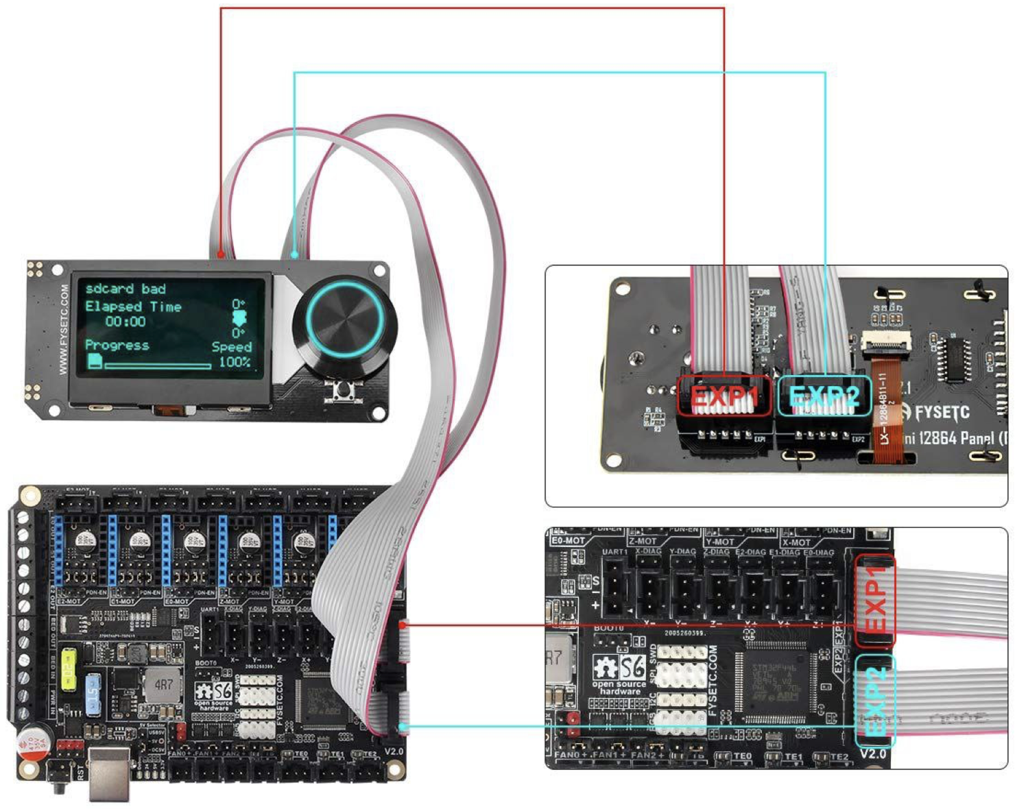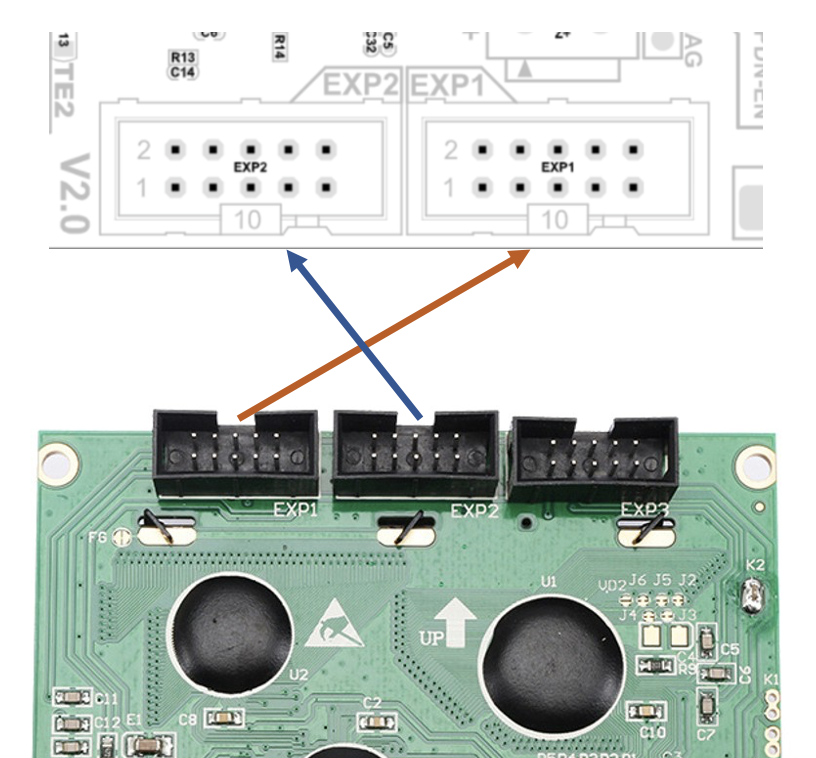 En el caso de nuestra Fysetc deberemos usar los conectores EXP1 y EXP2 conectando directamente al correspondiente de la placa: