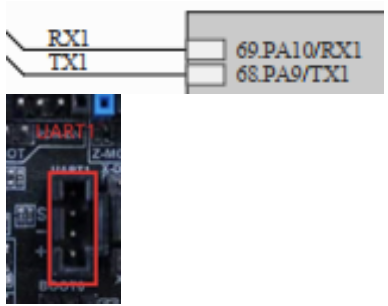 USART1 -RX1 y TX1- (PA10 y PA9 en UART)