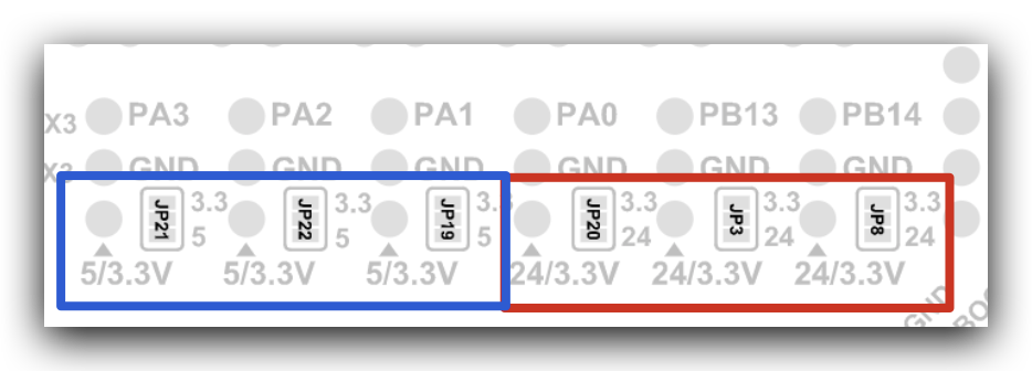 Conectores X+/Y+/Z+, podremos escoger 5v o 3.3v (defecto)... indicado por ejemplo para sensores bltouch de 5v