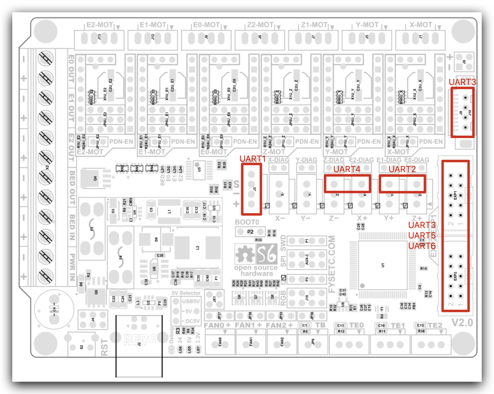 6 drivers con soporte UART y SPI que en el caso de usar TMC cuentan con pines para una configuración sencilla