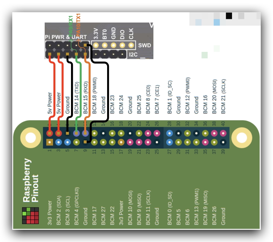 Conectores UART para conexión y alimentación de una Raspberry Pi sin necesitad de cables externos