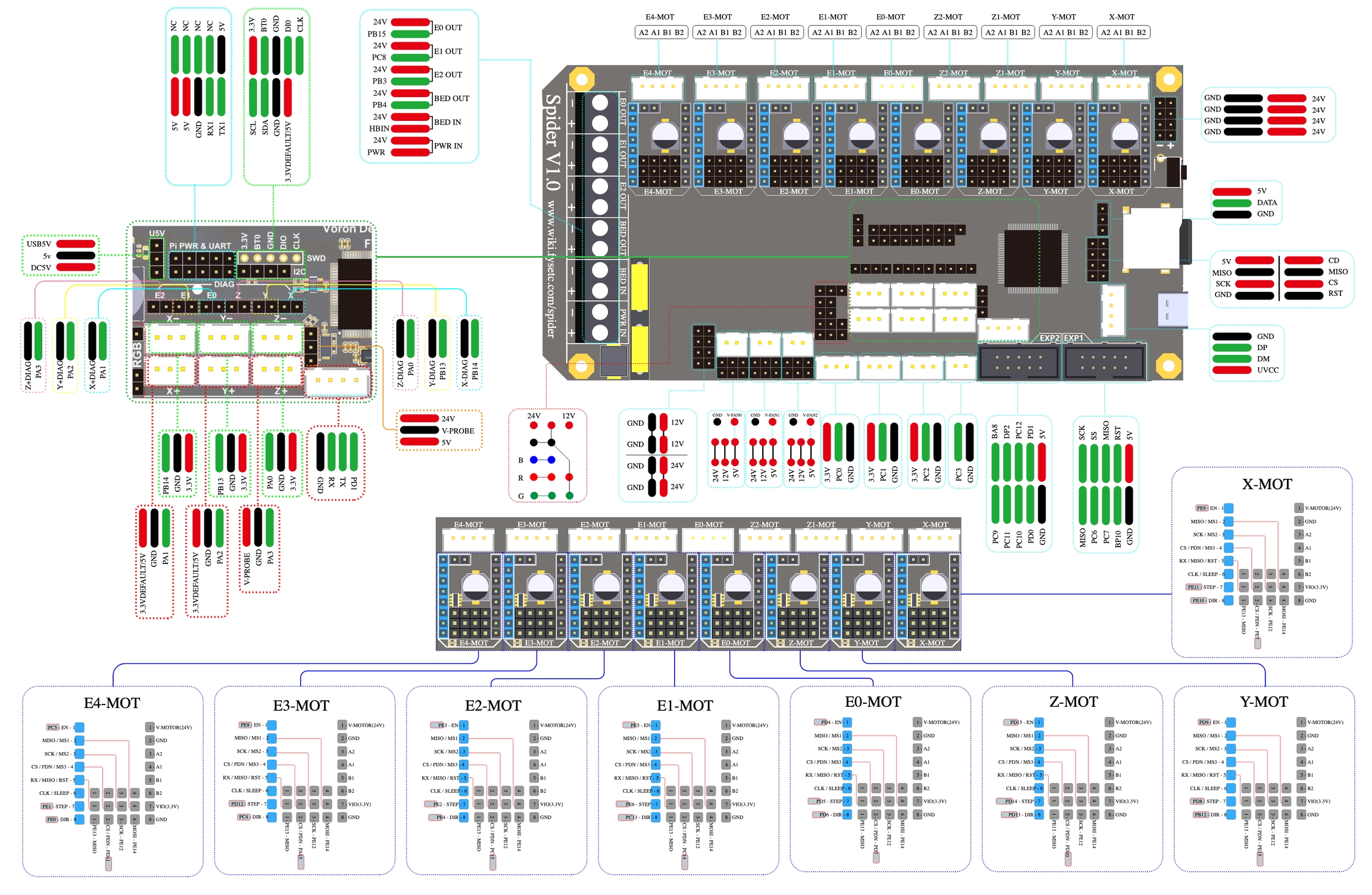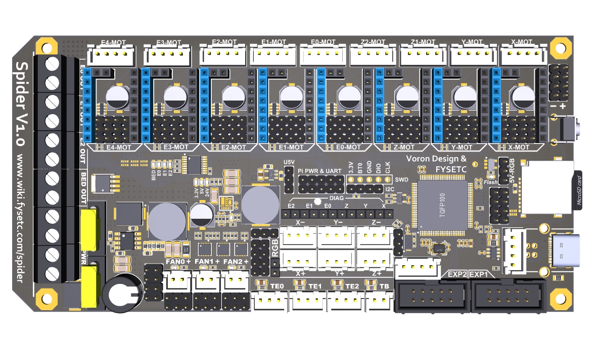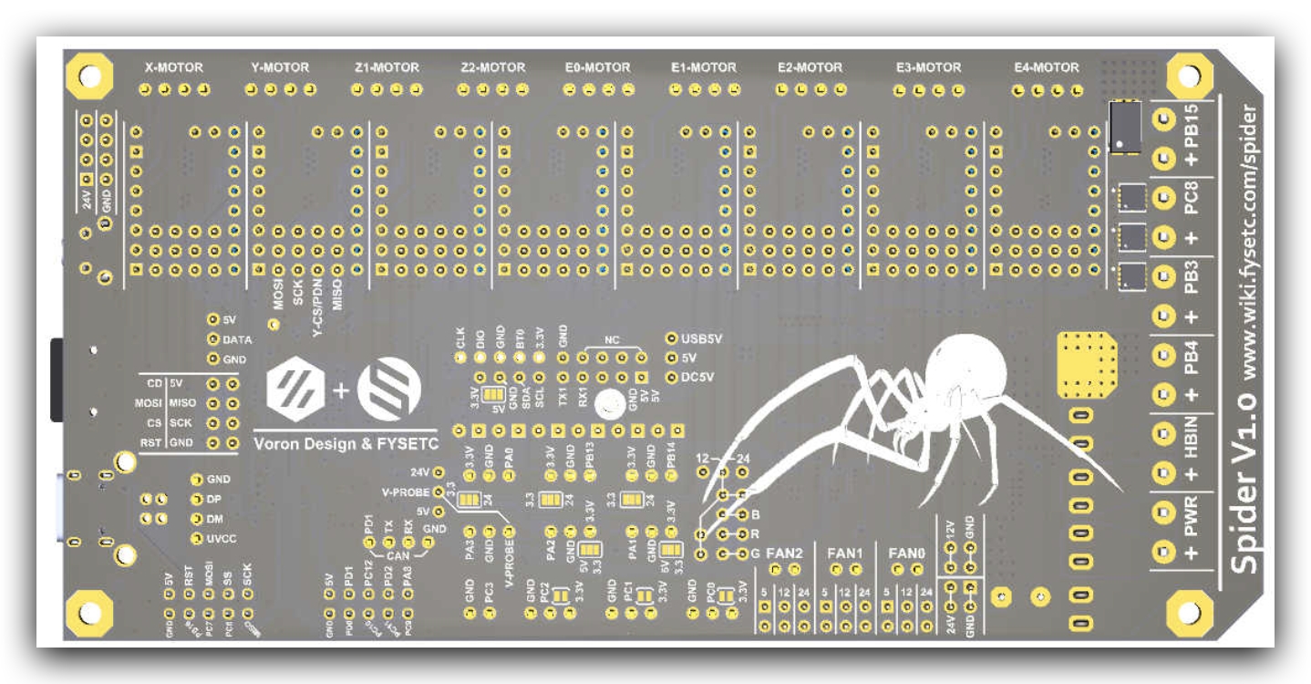 La Fysetc Spider ha sido diseñada teniendo en mente su uso en impresoras VORON 2.4 o similares, el equipo de VORON ha cooperado estrechamente durante el diseño y desarrollo de la misma.