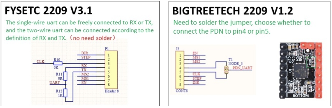 Para drivers Bigtreetech deberemos asegurarnos que esten en UART mediante el jumper soldado en la parte de abajo del propio driver.