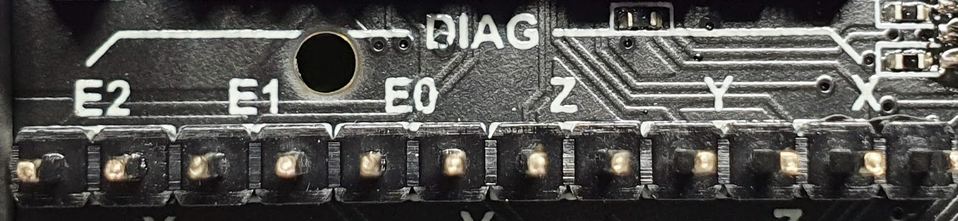 Si queremos utilizar esta funcionalidad de los drivers TMC que usa los motores como finales de carrera lo tendremos muy sencillo ya que la placa dispone de unos jumpers específicos para habilitar esta función, de todas formas os aconsejamos revisar nuestra guía sensorless para conocer más de esta gran funcionalidad.