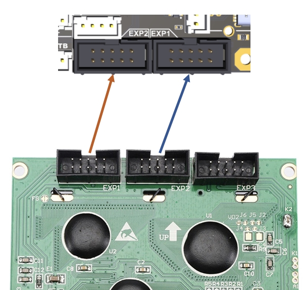 En el caso de nuestra Fysetc deberemos usar los conectores EXP1 y EXP2 conectando directamente al correspondiente de la placa: