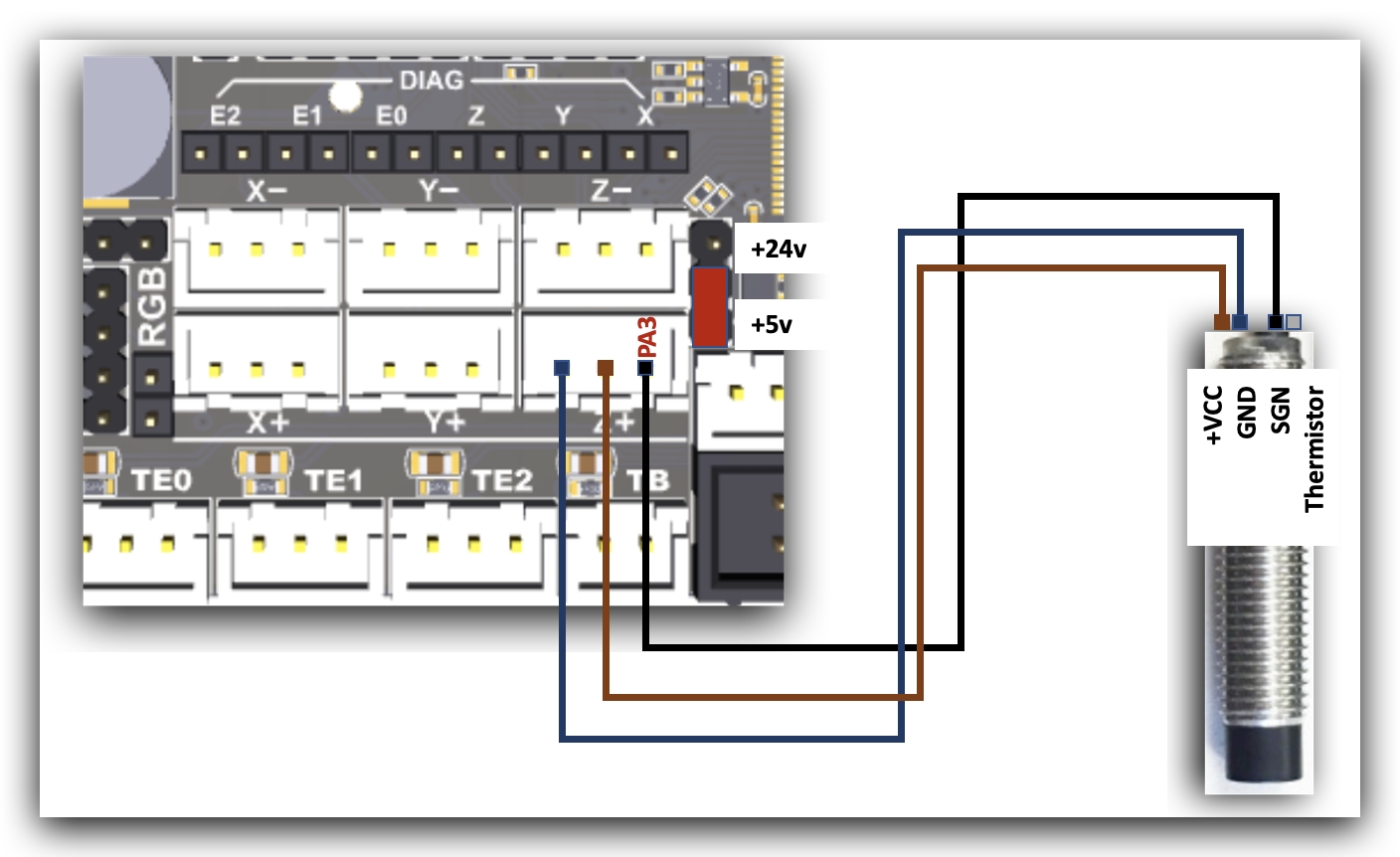 Por otro lado y en esta placa es también importante usar el pin PA3 para la conexión de la señal de endstop ya que este tiene un conversor de señal de entrada para adaptarlo a las señales 3.3v de la placa y evitar necesitar octoacopladores externos.