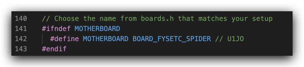 Actualmente Marlin no cuenta con una definición de entorno específica para la Fysetc Spider y dado que su base es la misma que la Fysetc S6 usaremos esta para platformio.ini