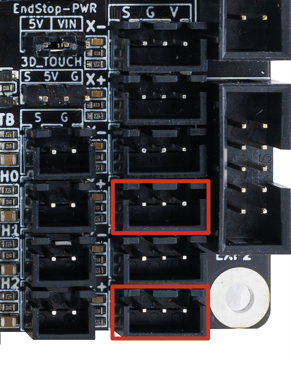 Al poder contar con 3 salidas de hotend disponemos de 4 conectores para termistores , 3 para hotends (TH0, TH1, TH2) y 1 para la cama caliente (TB). Os recordamos que la orientación de los cables de los termistores normalmente no es importante ya que estos no suelen tener polaridad.