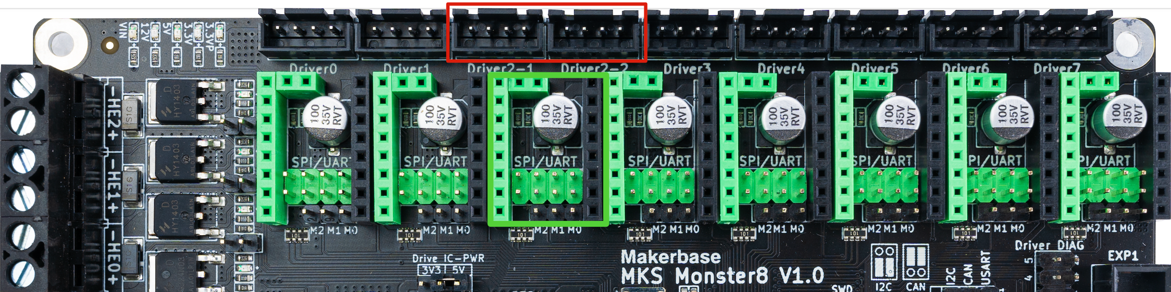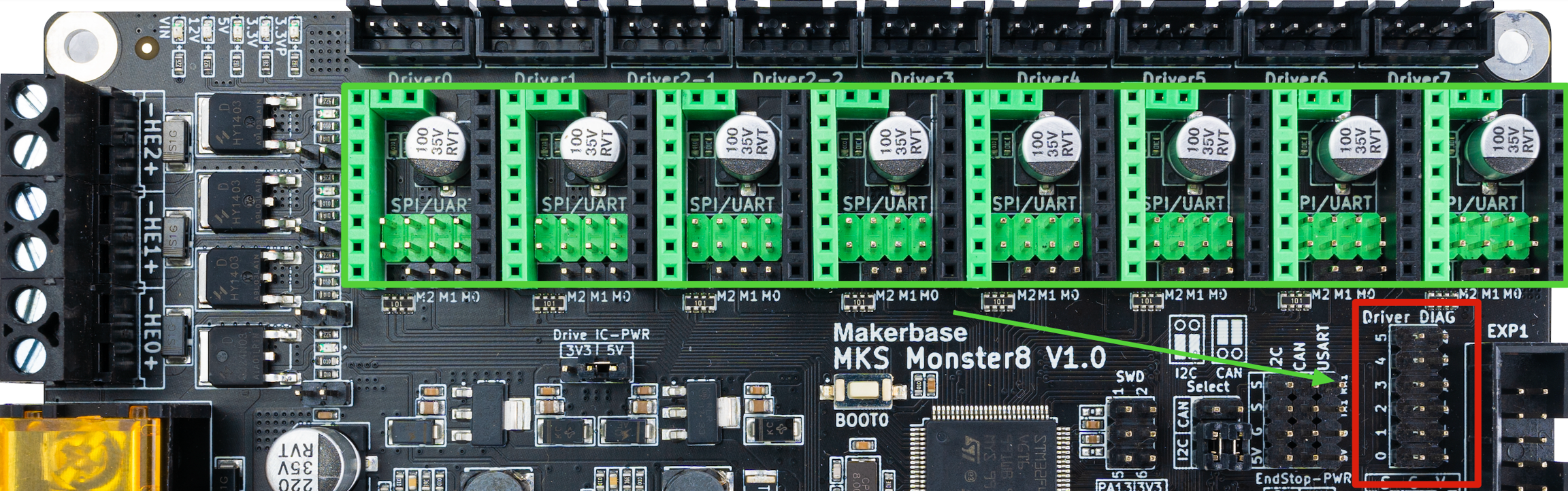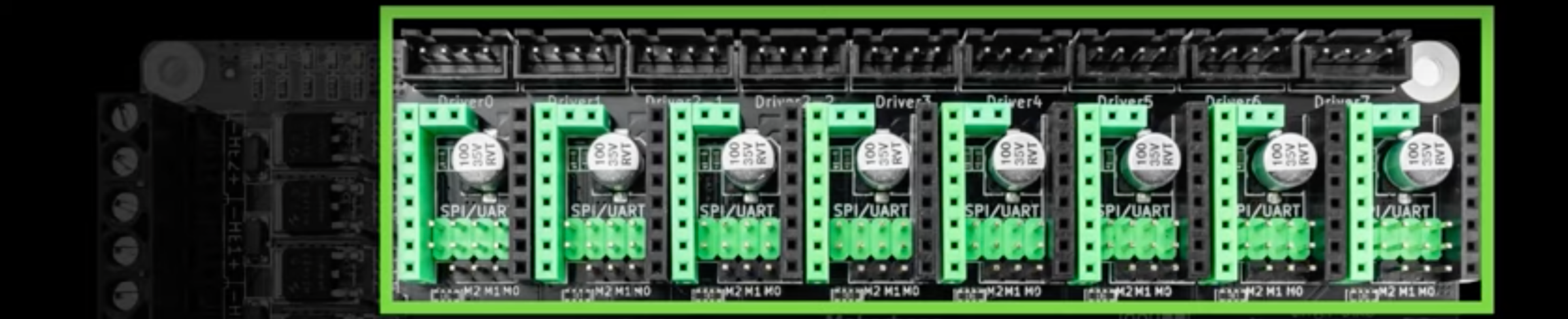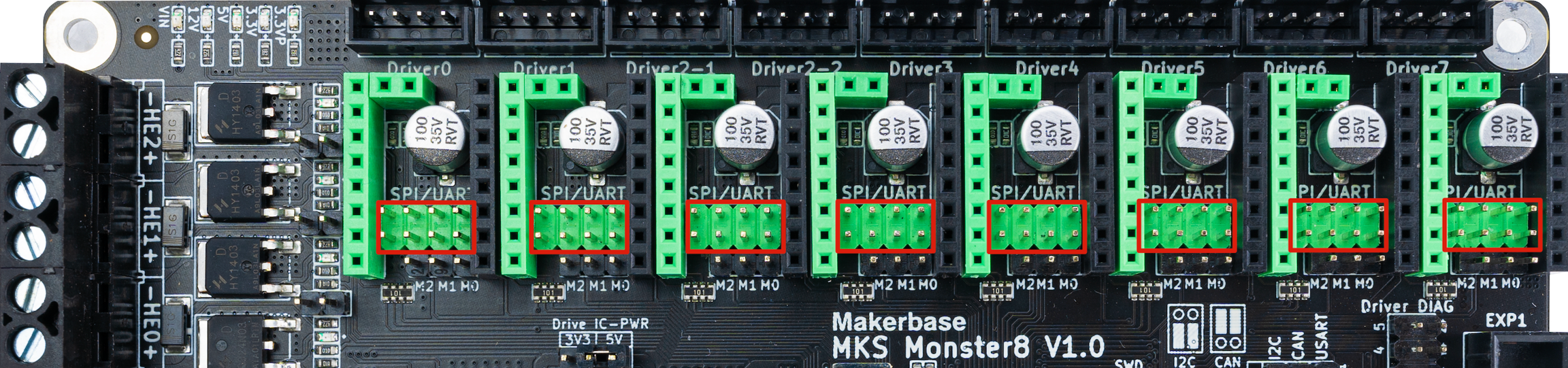 El soporte para casi cualquier tipo de driver y diferentes modos de los mismos nos da muchas posibilidades a la hora de confeccionar nuestra máquina. A día de hoy y bajo nuestro punto de vista lo más aconsejable es siempre habilitar nuestros drivers en modo "inteligente" (UART/SPI) siempre que estos los soporten, la MKS Monster8 también dispone de opción para usar drivers en modo standalone (Step/DIR).