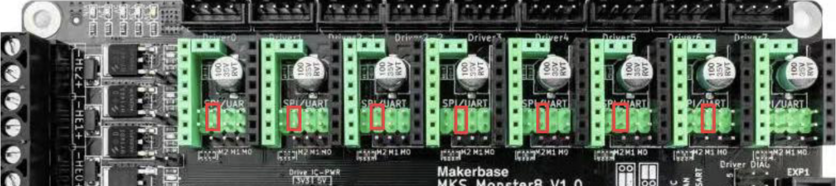 Si usamos drivers SPI deberemos de conectar los jumpers en cada driver que usemos SPI según la siguiente imagen.
