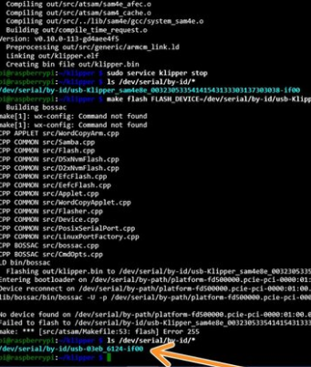 lanzamos el comando de instalación poniendo nuestro "serial id" después del = make flash FLASH_DEVICE=