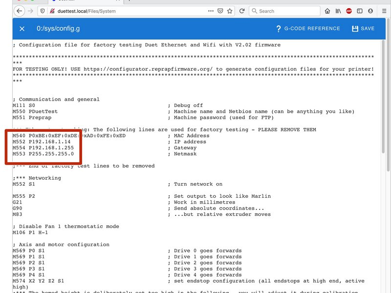 Si nos interesa configurar una IP fija para evitar cambios tenemos dos opciones, o la forzamos en el DHCP de nuestro router de casa o podemos definirla en el fichero de configuración con el gcode en el config.g M552 Pxxx.xxx.xxx.xxx donde las x serán la IP que queramos asignarle... pero recuerda que si esta esta dentro del rango DHCP de tu router puede crear colisiones!!!