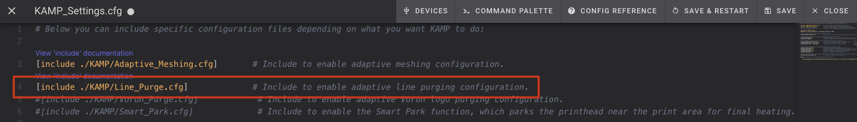 Dentro de nuestro printer.cfg añadiremos un include para que cargue nuestro/s nuevo/ cfg al final de este, pero **recuerda que como siempre por encima de la sección SAVE\_CONFIG!!!**: