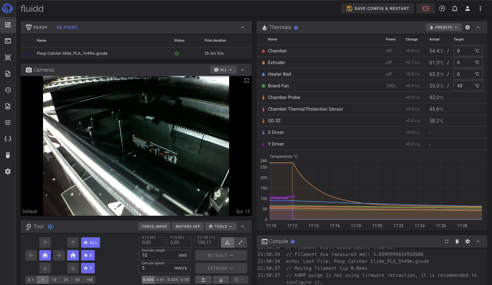 QIDI por defecto habilita la interfaz Fluidd para la gestión de Klipper remota, disponemos de pantalla en la impresora pero las opciones y funciones de esta son bastante limitadas comparadas con Fluidd.