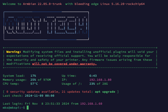 QIDI también permite acceso al host por SSH para utilizar la linea de comandos, especialmente útil para algunos usuarios y algunos procesos que explicaremos más adelanta.