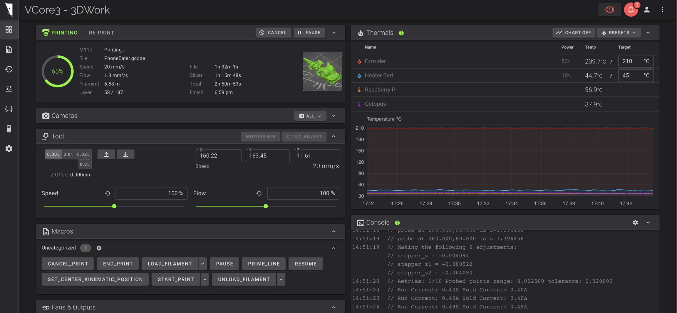 El poder gestionar la máquina desde cualquier dispositivo gracias a Fluidd, nuestra pantalla LCD o incluso usando una pantalla a nuestra Raspberry Pi es una delicia.