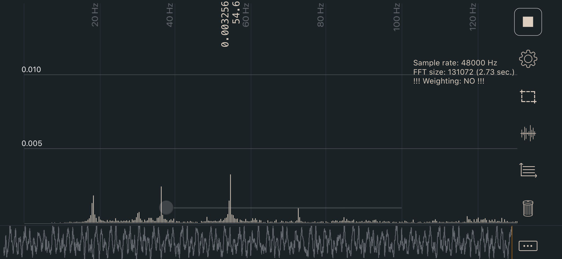 Usaremos una aplicación para nuestro teléfono llamada Spectroid y colocaremos el micrófono de nuestro teléfono lo más próximo a la zona marcada en la imagen anterior. Una vez colocado el teléfono y la aplicación capturando el sonido, idealmente hacerlo en un lugar con el mínimo sonido ambiente posible, como si tocáramos una cuerda de guitarra presionaremos la correa en el punto marcado de la imagen anterior.
