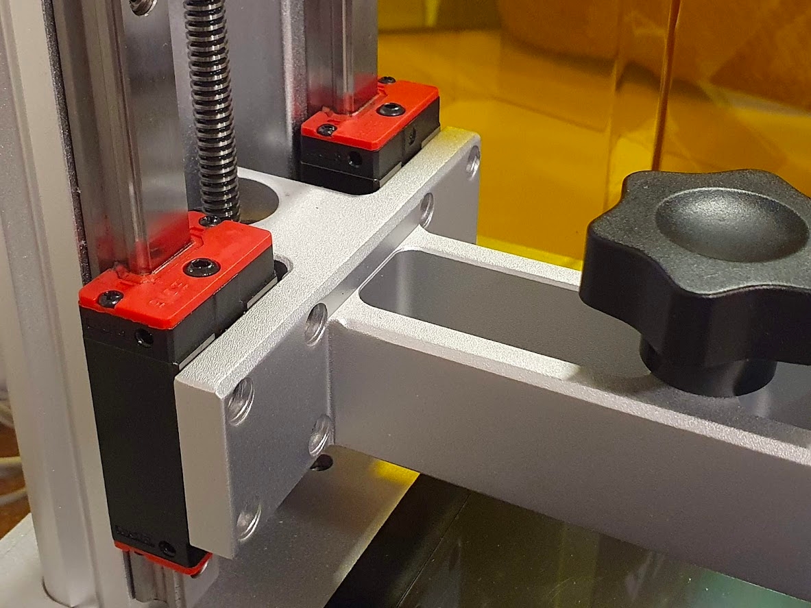 Además contamos con un doble eje Z sobre guías lineales lo cual aporta un extra de precisión y robustez al conjunto... además el sistema de la plataforma es muy cómoda de poner y quitar y sus sistema de nivelación muy fiable.