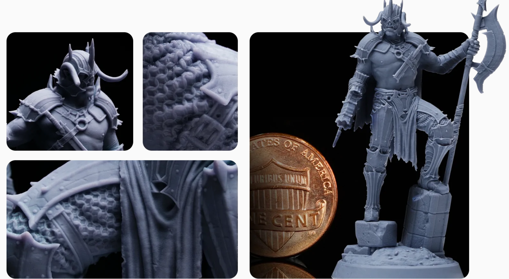 Las pruebas que hemos realizado con la Photon D2 han sido de todo tipo, desde diferentes tests de exposición , minis y bustos que ocupaban cerca de un 80% del área de impresión no hemos tenido ningún problema con ella obteniendo unas piezas bien definidas y sin artefactos.