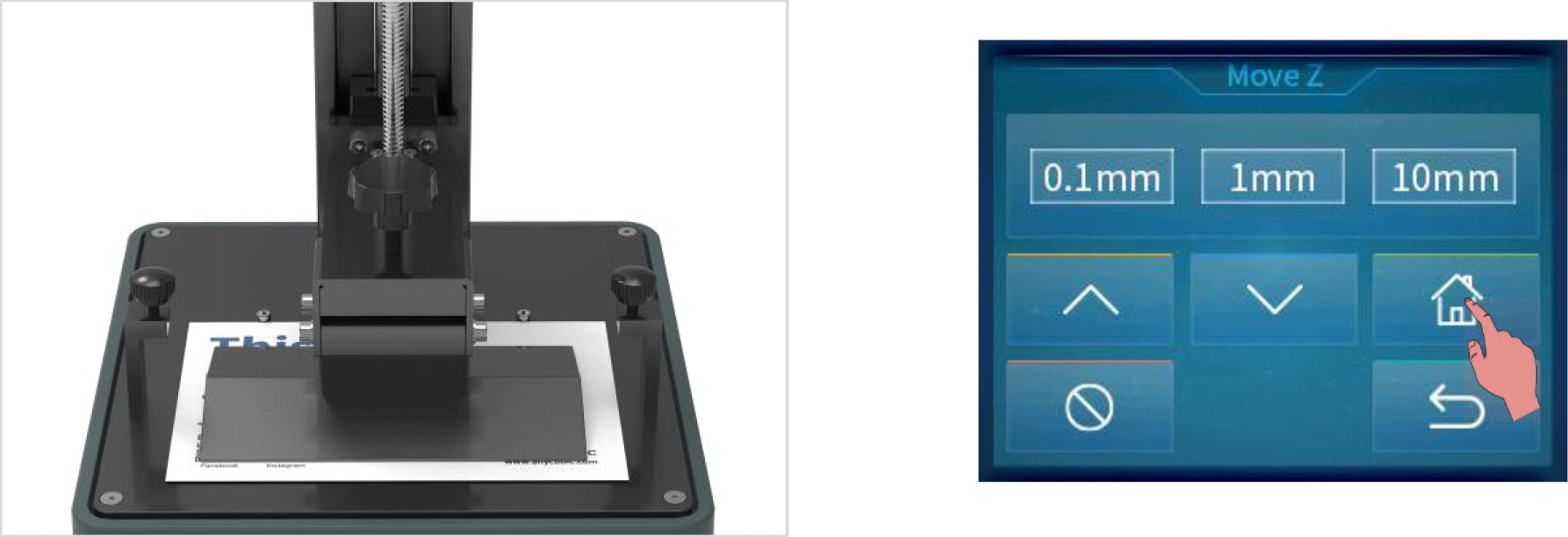 Colocaremos la hoja de nivelación incluida pulsando a continuación en el icono Home, esperaremos a que el eje Z descienda y se pare automáticamente