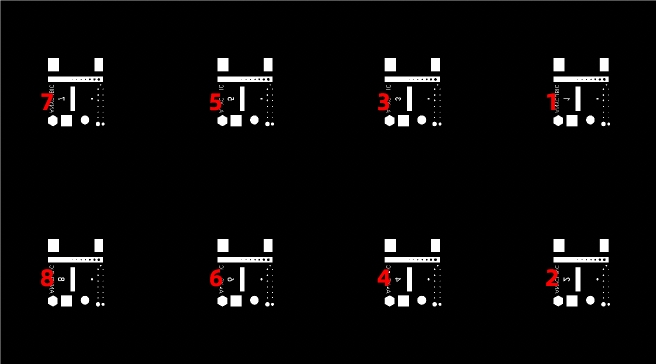 Básicamente el test R.E.R.F. (abreviación de Resin Exposure Range Finder), que está incluído en el USB de la impresora, nos permite mediante 8 figuras que incluyen diferentes tests colocadas por sectores en nuestra base de impresión y que gracias al firmware permite que cada uno de esos sectores tengan un tiempo de exposición diferente.