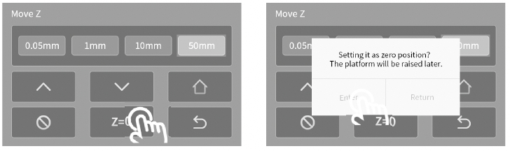 Volviendo a la pantalla iremos al menú Tools y pulsaremos sobre Z=0 para almacenar la posición 0 de nuestra impresora, pulsaremos Enter dos veces para aceptar Z=0 y levantar la plataforma de impresión para que nos permita retirar la hoja de nivelación.