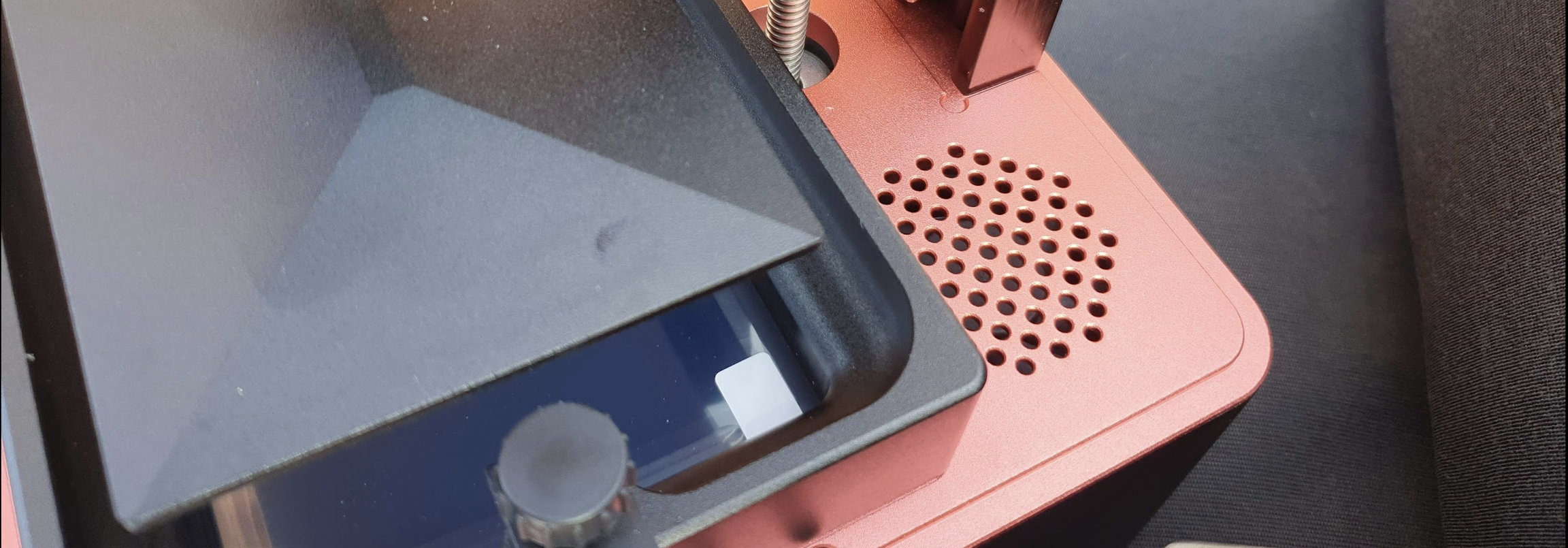 La Mars 2 Pro cuenta con un cuerpo mecanizado en aluminio que ofrece sin duda un chasis robusto y de alta durabilidad. Incluyendo la bandeja de la resina o VAT la cual se sujeta de una forma firme a la base mediante los típicos anclajes superiores un sistema sencillo pero que deberemos manipular con cuidad durante la extracción del VAT para evitar dañar la pantalla.