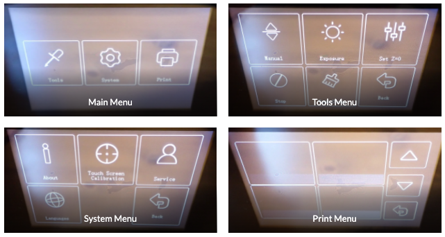 Os aconsejamos antes de realizar nuestra primera impresión hacer un test de la pantalla LCD. En el menú Tool>Exposure podemos especificar el tiempo del test y al lanzarlo veremos en la pantalla la image ejemplo.