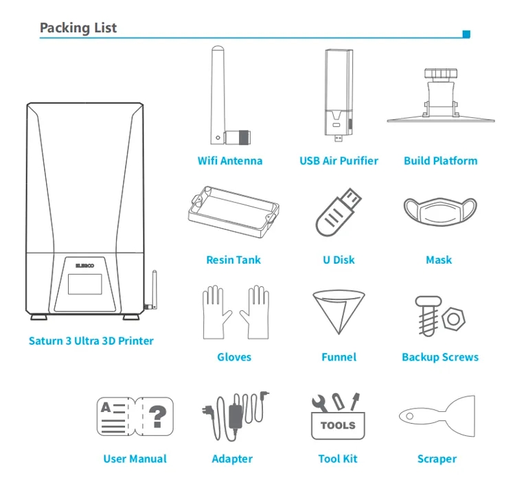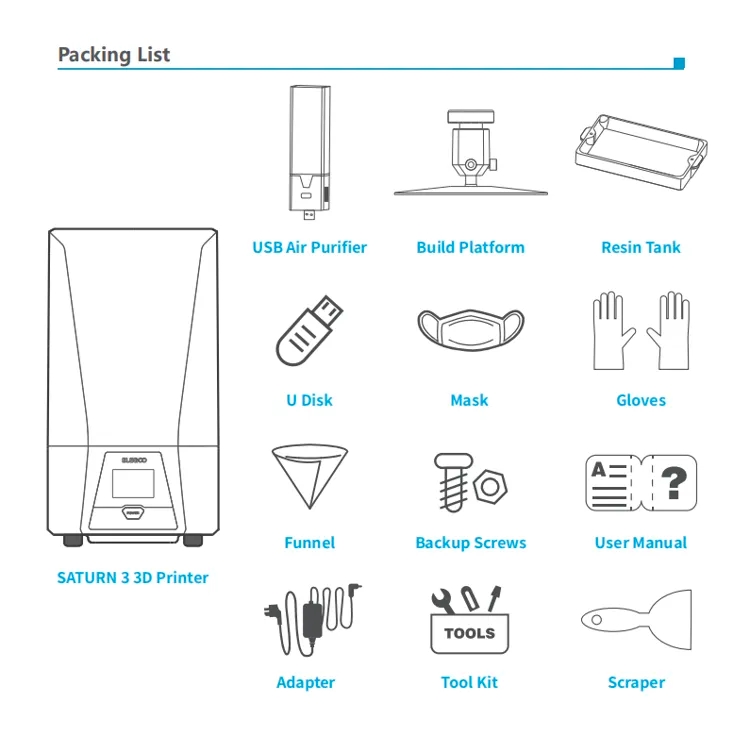 Como siempre con ELEGOO la Saturn 3 y 3 Ultra vienen perfectamente empaquetadas, incluyendo todo lo necesario para la puesta en marcha y mantenimiento de nuestra impresora.