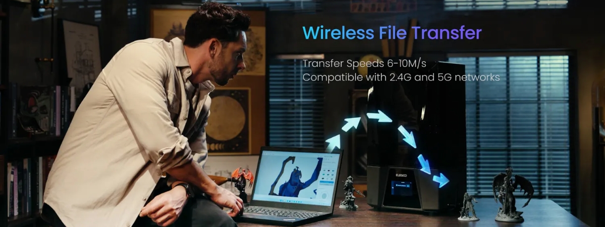 Otra característica específica de la Saturn 3 Ultra es su conectividad WiFi. Esta función, que ya comenzamos a ver extendida entre las impresoras de resina, nos va a permitir transferir nuestros modelos a la impresora de forma inalámbrica y olvidarnos de ir con el USB de un lado para otro además de poder monitorizar el estado de nuestra impresora remotamente. En este caso, la Saturn 3 Ultra tiene un módulo WiFi compatible con redes 2.4G y 5G con unas velocidades de transferencia de entre 6-10Mbps.