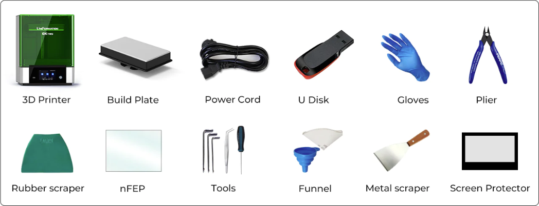 UniFormation con su GKtwo ha prestado especialmente atención en el empaquetado de la máquina, así como un completo kit con todo lo necesario para la puesta en marcha y mantenimiento de nuestra impresora.