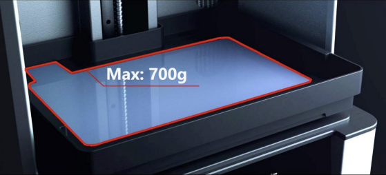 Ahora que tenemos la plataforma de impresión nivelada usaremos los controles de pantalla para subir unos mm la plataforma, los suficientes para que podamos retirar la plataforma y instalar el VAT en su ubicación que encaja en unas guías para quedar bien fijado. Con el VAT colocado procederemos a rellenarlo de resina para comenzar a realizar los primeros tests. El VAT cuenta con una capacidad de 700 g aproximadamente de máximo, os aconsejamos tomar como referencia la siguiente imagen.