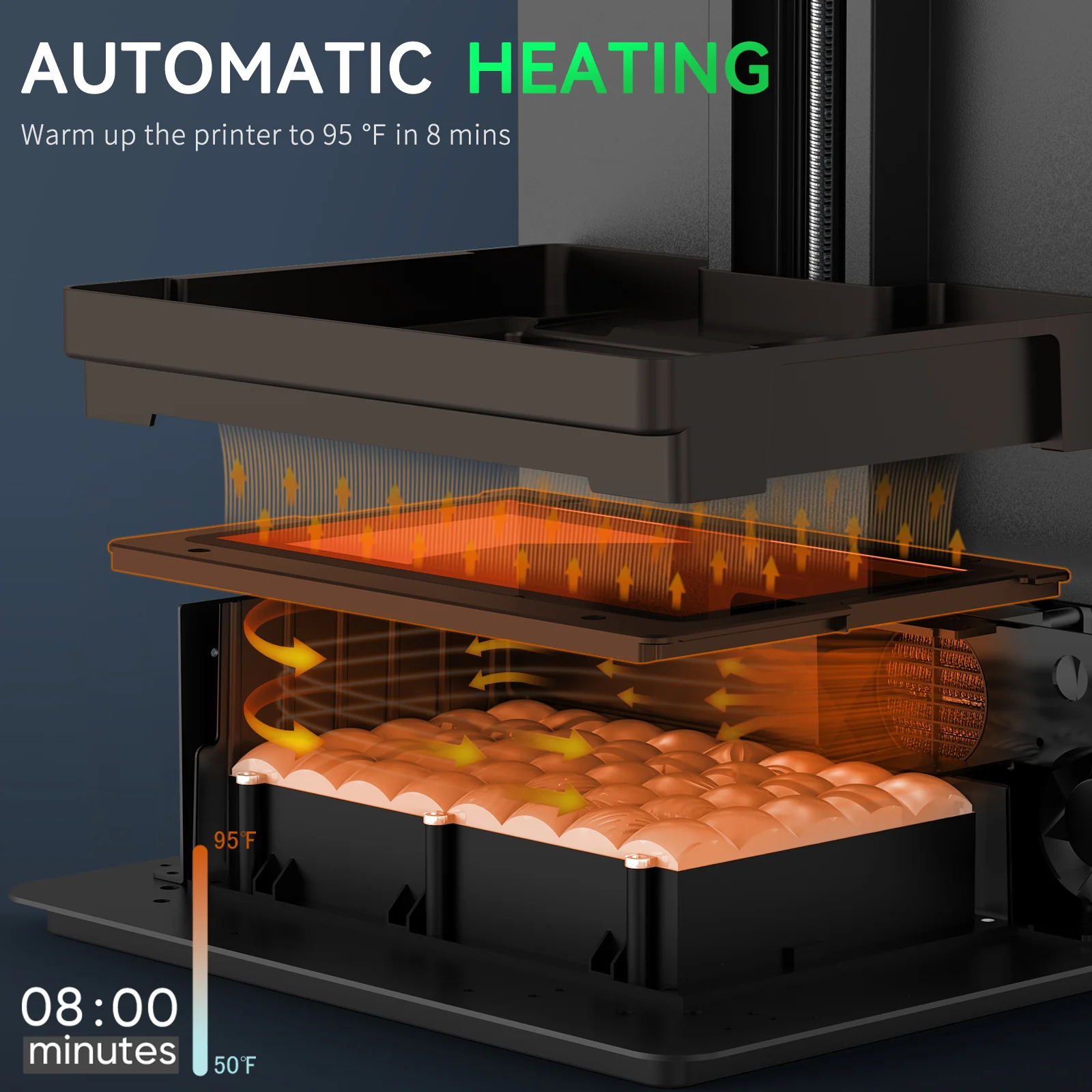 Además si le sumamos que su sistema de plataforma de impresión y VAT son de lo mejor que hemos probado últimamente por manejo y pensando en el usuario... el añadido de disponer de un sistema de filtración potente además de un sistema de calefactor para mantener la temperatura óptima... es la guinda final al pastel.